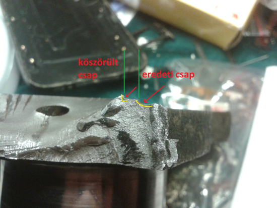 A képen szépen látni (klikk), hogy az eredeti csap tövében megvolt a kb. 3mm-es rádiusz, de az új csapoknál teljesen sarkosra van köszörülve: